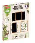 Festett tölgyfából készült iskolatábla, melynek palatábla része krétával írható, kihajtható szélei pedig az erdő élővilágát ábrázolják. Kréta és táblatörlő is tartozik hozzá.