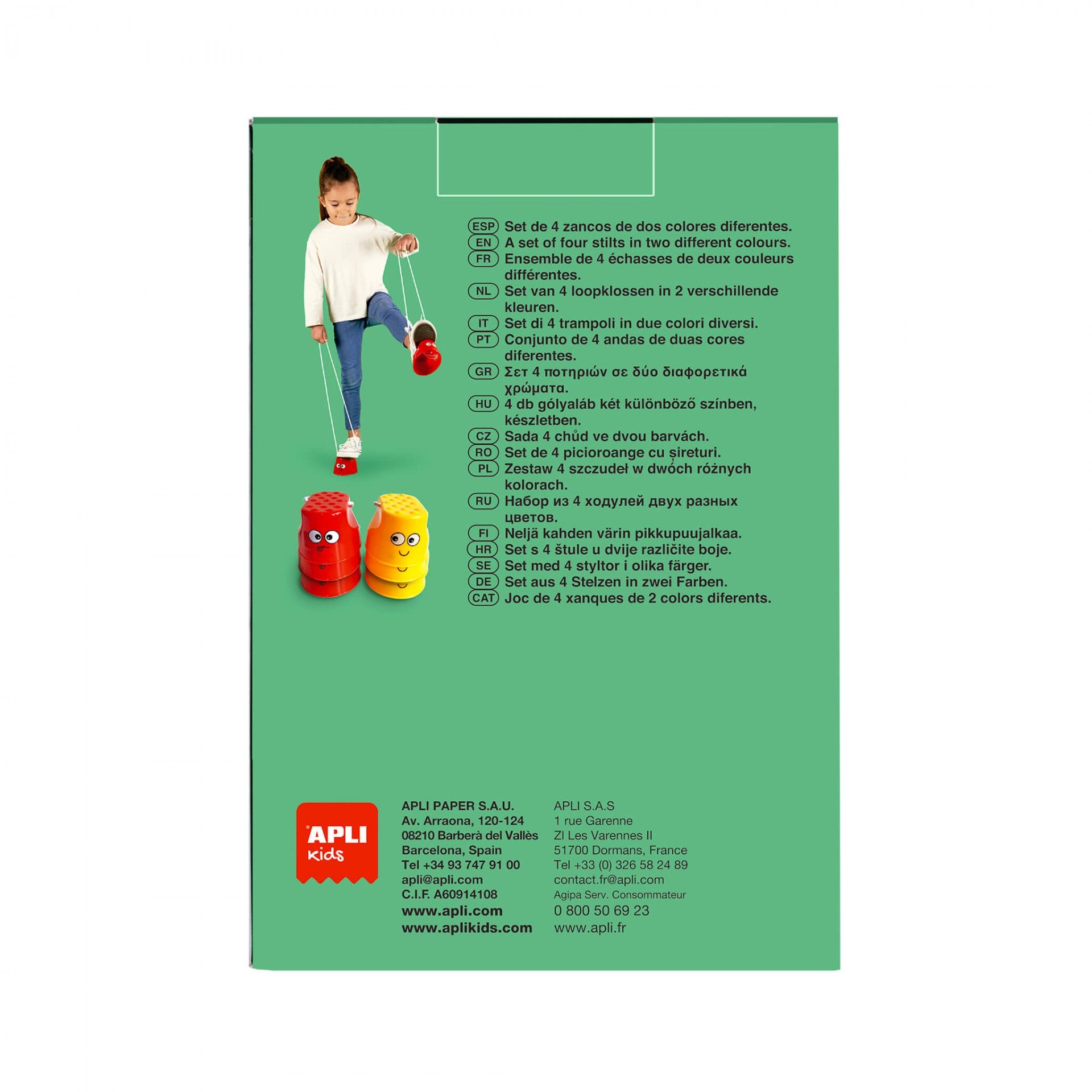A játékban a gyerekek gólyalábakon járnak, és próbálják megtartani az egyensúlyukat. A játék 2 sárga gólyalábat, 2 piros gólyalábat és 1 zsákot tartalmaz a játék tárolására. Ideális szabadtéri játékhoz és kellemes időtöltés kerti partikon.