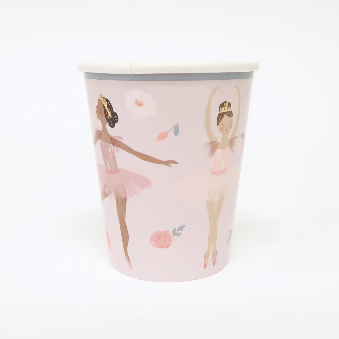 Gyönyörű kivitelű papírpoharak a kis balerináknak. Nézz hozzá tányért, szalvétát és maffinkosárkát is!